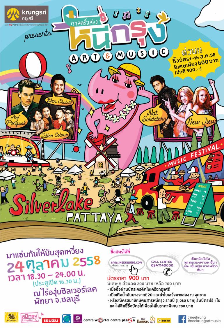 ระเบิดความสนุกเต็มพิกัด กับคอนเสิร์ตนิตยสารหนีกรุง กาลครั้งสอง...หนีกรุง ART & MUSIC presented by ธนาคารกรุงศรี ตอน แซ่บ สุด เหวี่ยง เชือดเฉือนกันสะเทือนเวที กับศิลปินฮอตสุดขีดในยุคนี้ เบน ชลาทิศ ปะทะสะใจกับ อ๊อฟ ปองศักดิ์ ตามด้วยสุดยอดดูโอ้สาว นิว-จิ๋ว จูงมือนักร้องหนุ่ม ณัฐ ศักดาทร ต่อเนื่องความมันส์แบบ Non Stop กับวง Tattoo Color ในวันเสาร์ที่ 24 ตุลาคม 2558 ณ ไร่องุ่นชื่อดังซิลเวอร์เลค พัทยา จ.ชลบุรี